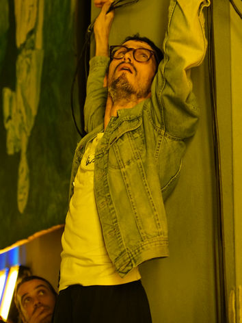 Focus of the performance: Storytelling, non-linear story, consciousness, associative state, description, metatheater, lost and found, xenolinguistics.